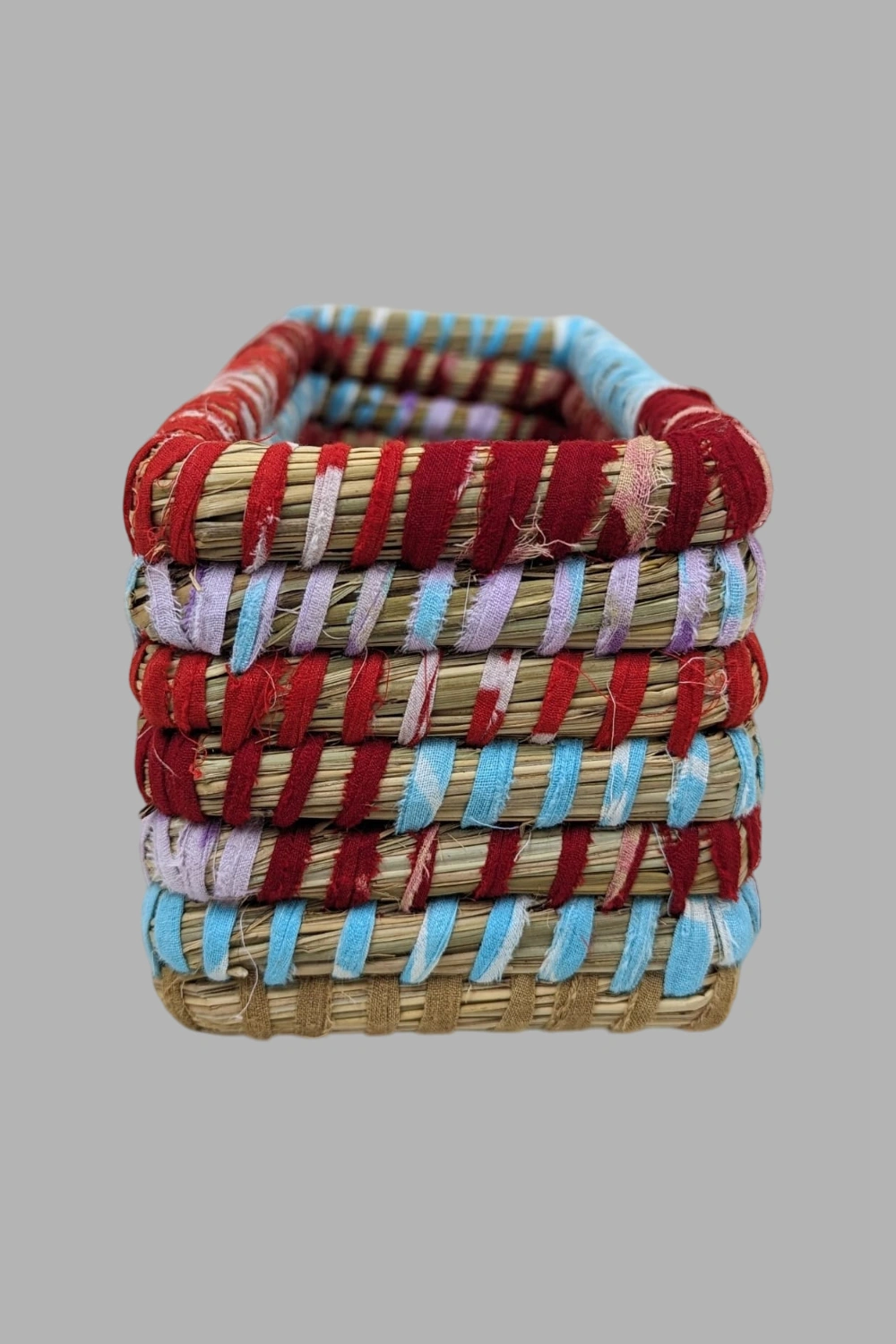Bring a blend of tradition and utility to your home with the BaSE-25013 Sari Faka Lota Basket. This beautifully handcrafted basket is inspired by classic Bangladeshi weaving techniques, making it both functional and decorative.