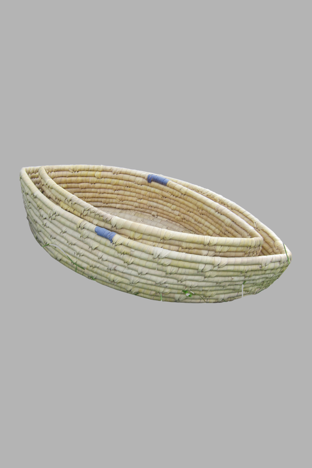 The Boat Tray is meticulously woven from date palm leaves and grass, creating an intricate and textured surface. The natural color palette and earthy tones celebrate the beauty of sustainable materials, making it an eco-friendly and visually appealing choice.