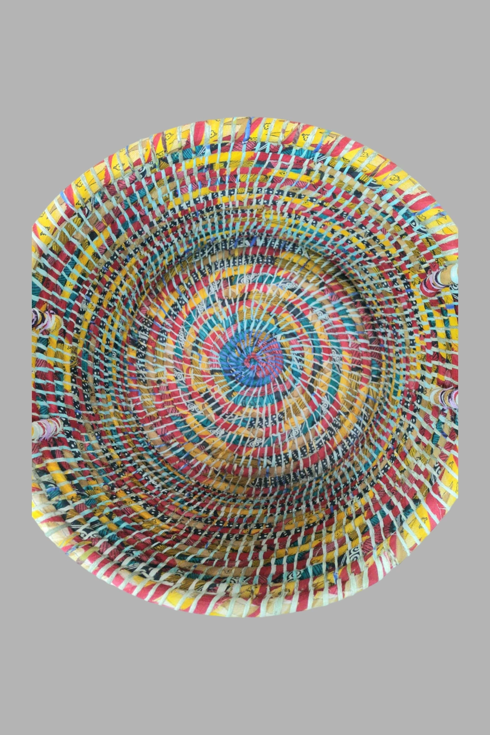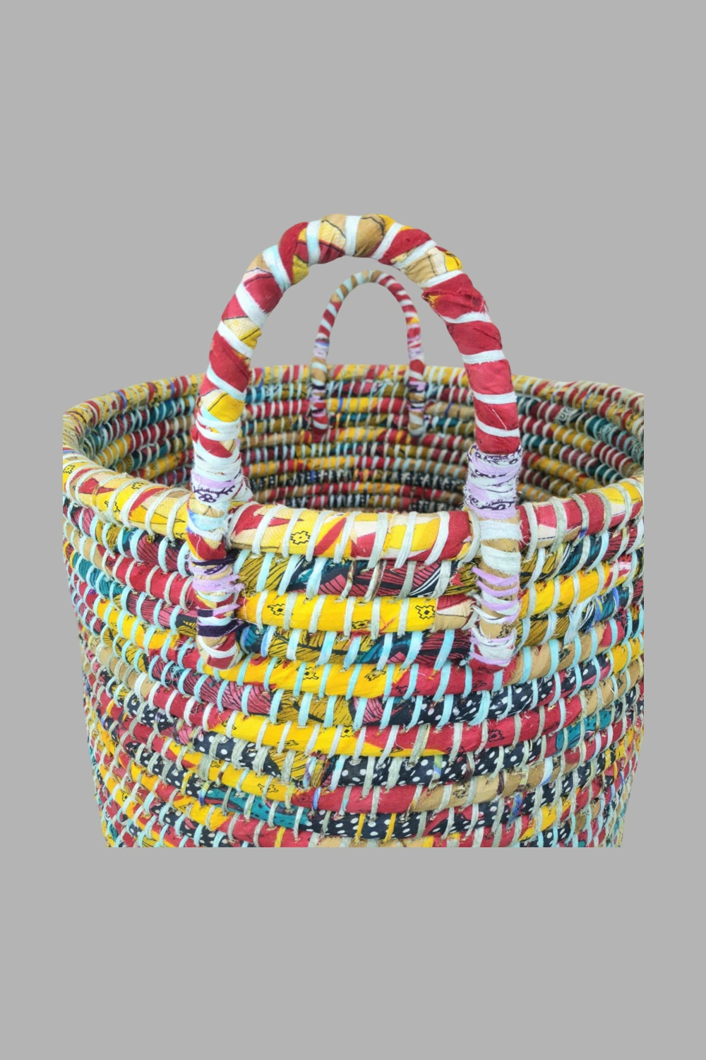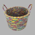 Add a pop of color and sustainability to your home with our Round Recycled Sari Baskets. Handcrafted from recycled saris, each basket is unique and perfect for storage or decor.